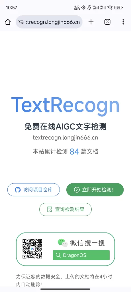 由龍進 毕业查ai率,某普有点贵。然后就自己做了一个查ai的程序,放到网上造福大众,免费使用。 网址是 textrecogn.longjin666.cn 代码也开源了,uu们也可以下载到自己电脑上面跑哈哈哈。 开源仓库地址:https://github.com/fslongjin/textrecogn 效果: