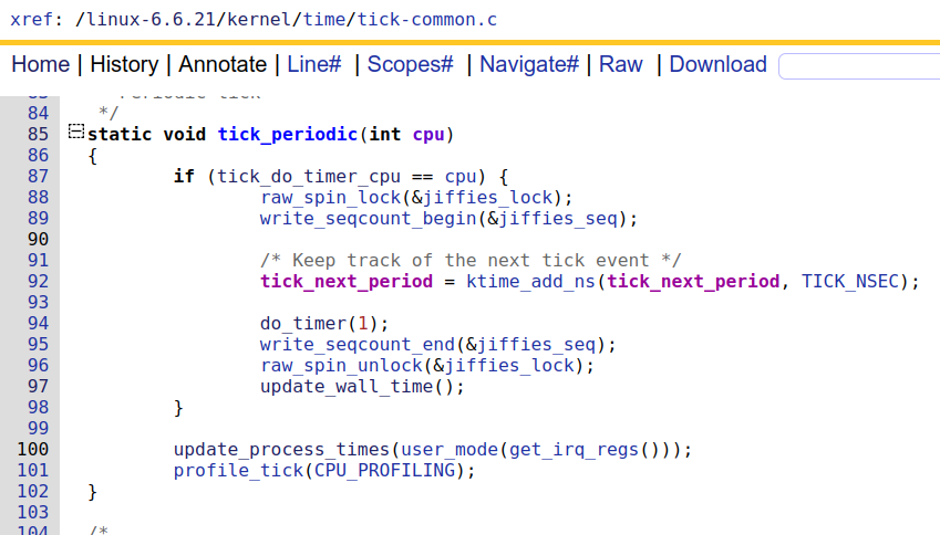 我翻了一下linux 6.6.21里面的做法,是在tick_handle_periodic里面,调用tick_periodic。